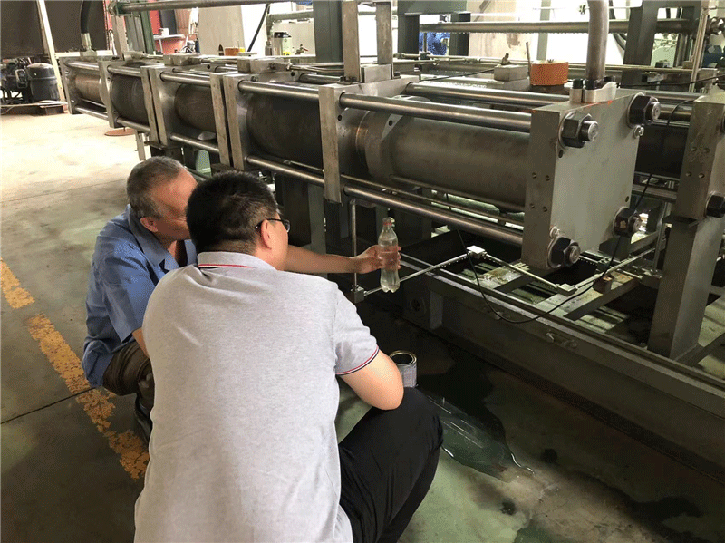 圖為深入加強探討交流技術(shù)問題,我司王總與濱化公司各位領(lǐng)導(dǎo)來到車間就壓縮機問題進行深入講解
