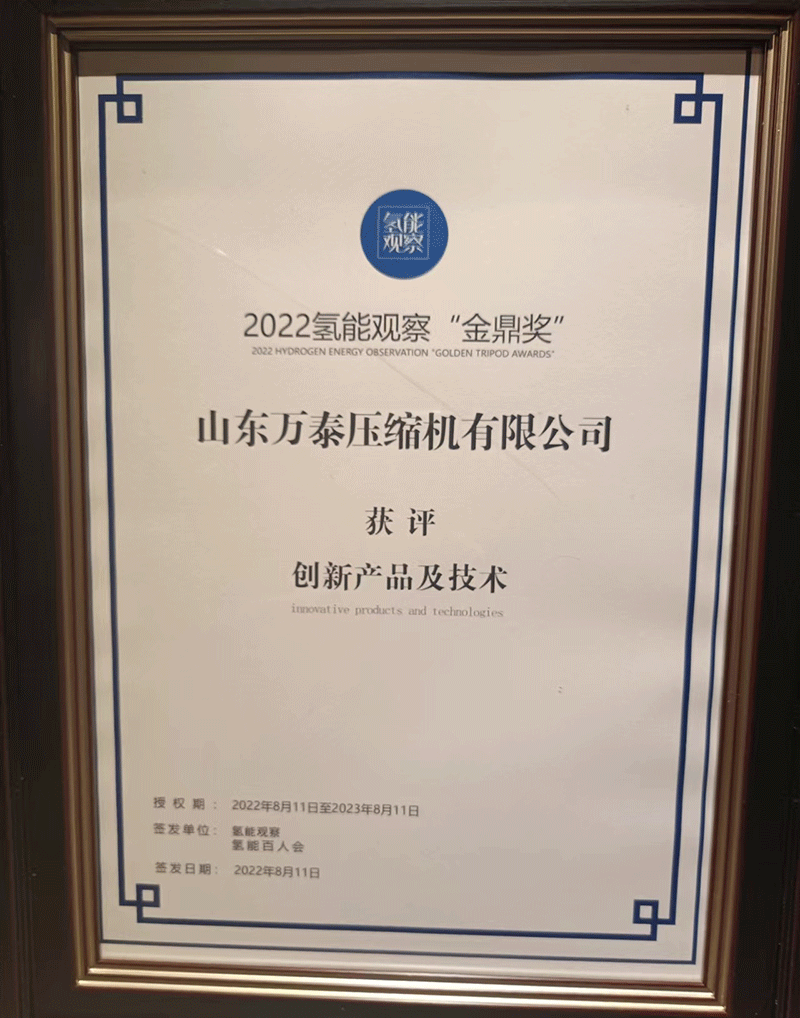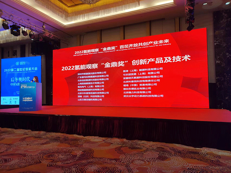 2022第二屆世紀氫能大會,公司獲評2022氫能觀察“金鼎獎”創新產品及技術
